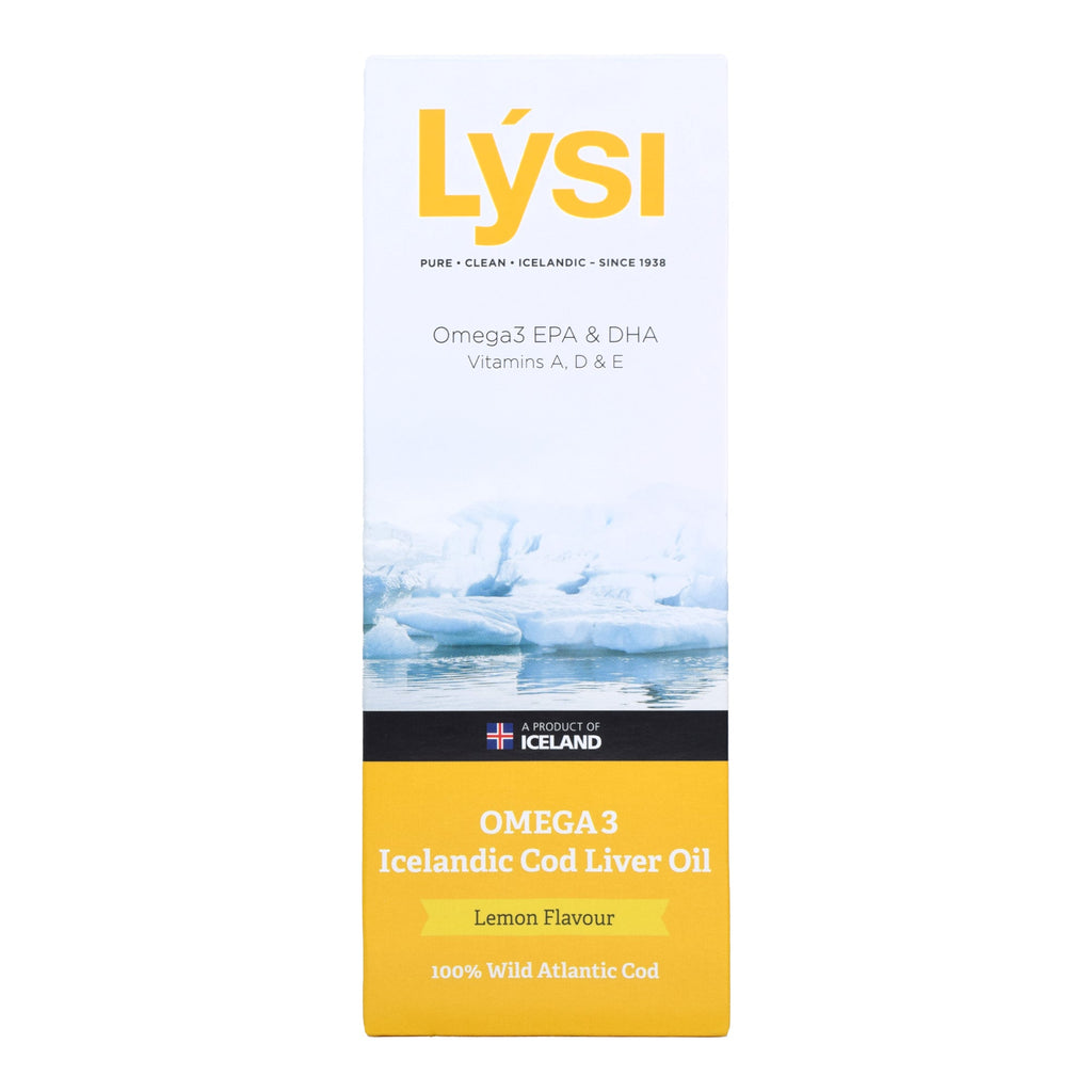 Aceite de hígado de bacalao, saborizante natural de limón, vitamina E, A, D3, libre de azúcar