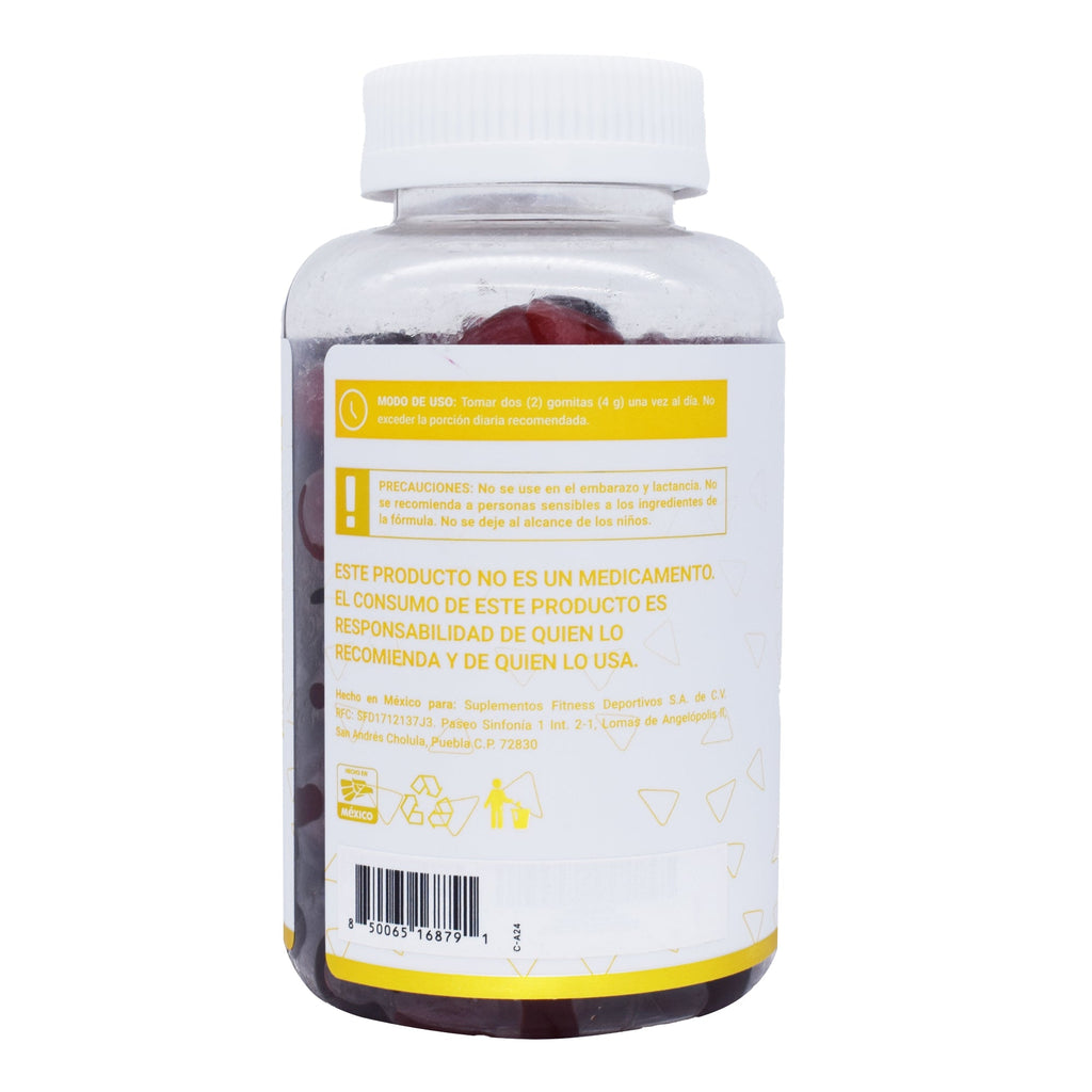 Jarabe de agave, pectina hidratada, fibra polidextrosa, ácido cítrico, stevia, sabor natural, palma de carnaúba, benzoato de potasio, color natural morado, zanahoria morada y rojo, pimiento rojo