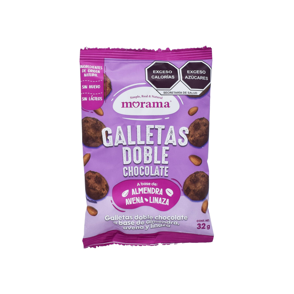 Harina de almendra, harina de avena, azúcar, chispas de chocolate, aceite vegetal, agua, cacao en polvo, linaza molida, vainilla liquida, bicarbonato de sodio, sal del himalaya, vitamina E