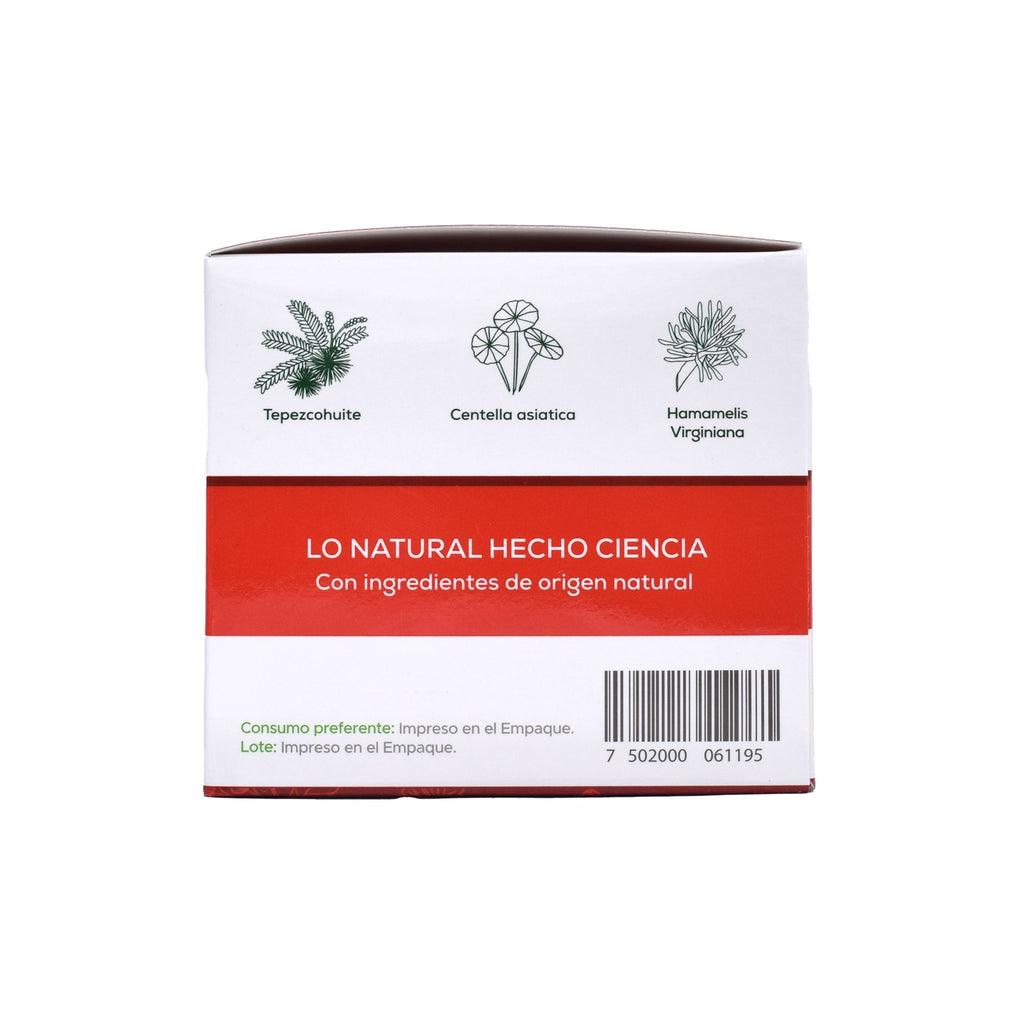 Hamamelis, centella asiática y caléndula, menta, eucalipto y árnica, tepezcohuite, salvia y manzanilla