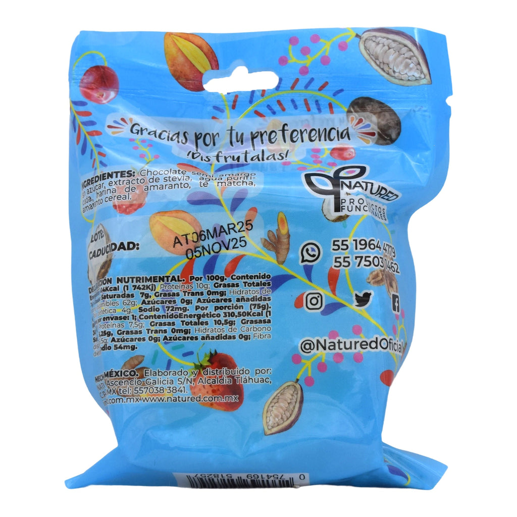 Harina de amaranto, coco en polvo, stevia, chocolate blanco